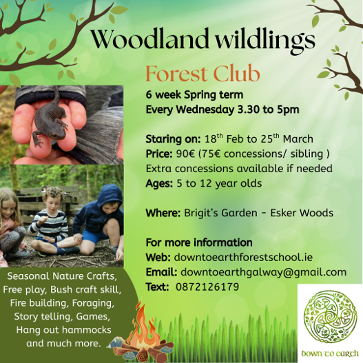 Woodland wildlings 5-13 year olds- Wednesdays 3.30-5pm